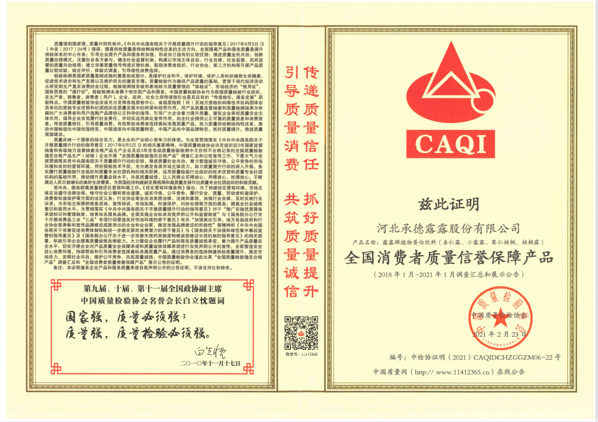 多年来,露露对品质的坚守得到了业界和消费者的一致认同,露露人以匠人精神专注于研究植物营养、健康领域,研发原生态高端植物饮品,致力于为消费者提供绿色、健康、可信赖的植物饮品。目前公司主要产品是“露露”杏仁露。它以纯天然、无污染的野山杏仁为原料,采用独特的微米级研磨技术精制而成,0胆固醇、0反式脂肪酸,助力提升每一位消费者的健康状态和生活质量。